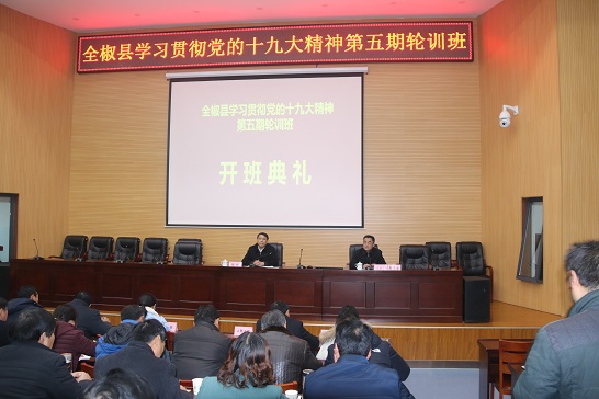 为深入学习宣传贯彻党的十九大精神,2018年1月18日上午,全椒县村(社区)书记学习贯彻党的十九大精神培训班(十九大精神第五期轮训班)在县委党校举行了开班仪式。县委常委、县委组织部部长、县统战部部长陈岭出席并作动员讲话,县委党校常务副校长、组织部副部长周宗金主持。