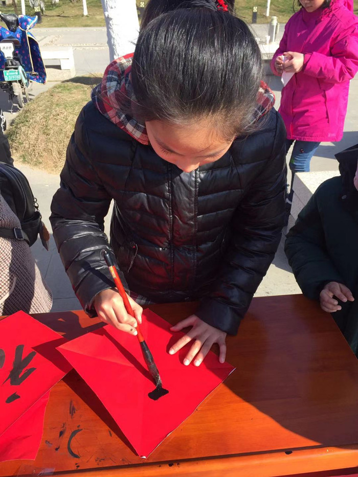 活动现场,还有一些稚嫩的面孔正在提笔写福字。据了解,这些孩童正是在襄水书法院老师们的教导和传带下积极参与到本次新时代文明实践志愿服务活动中,一方面展示自己的学习成果,另一方面也为家人和乡亲们送去新春祝福。