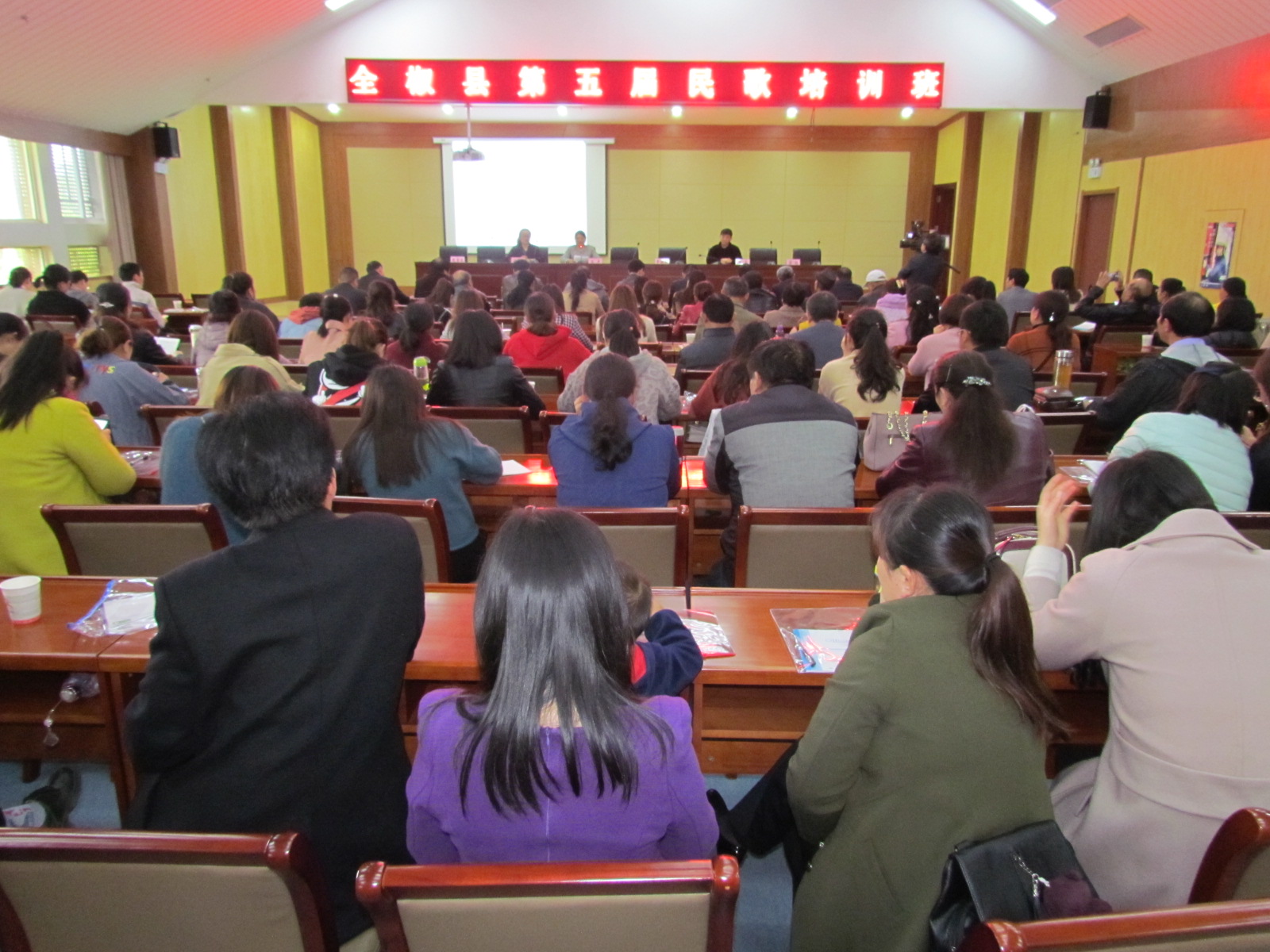 为进一步挖掘和展示省级非物质文化遗产项目全椒民歌这一宝贵民间文化资源,促进全椒民歌的传承与保护,让普通百姓享受到免费的公益性文化艺术培训,把文化惠民落实到实处, 4月29日,全椒县文化馆举办第五届民歌培训班,150多名民歌爱好者和学校老师参加培训。