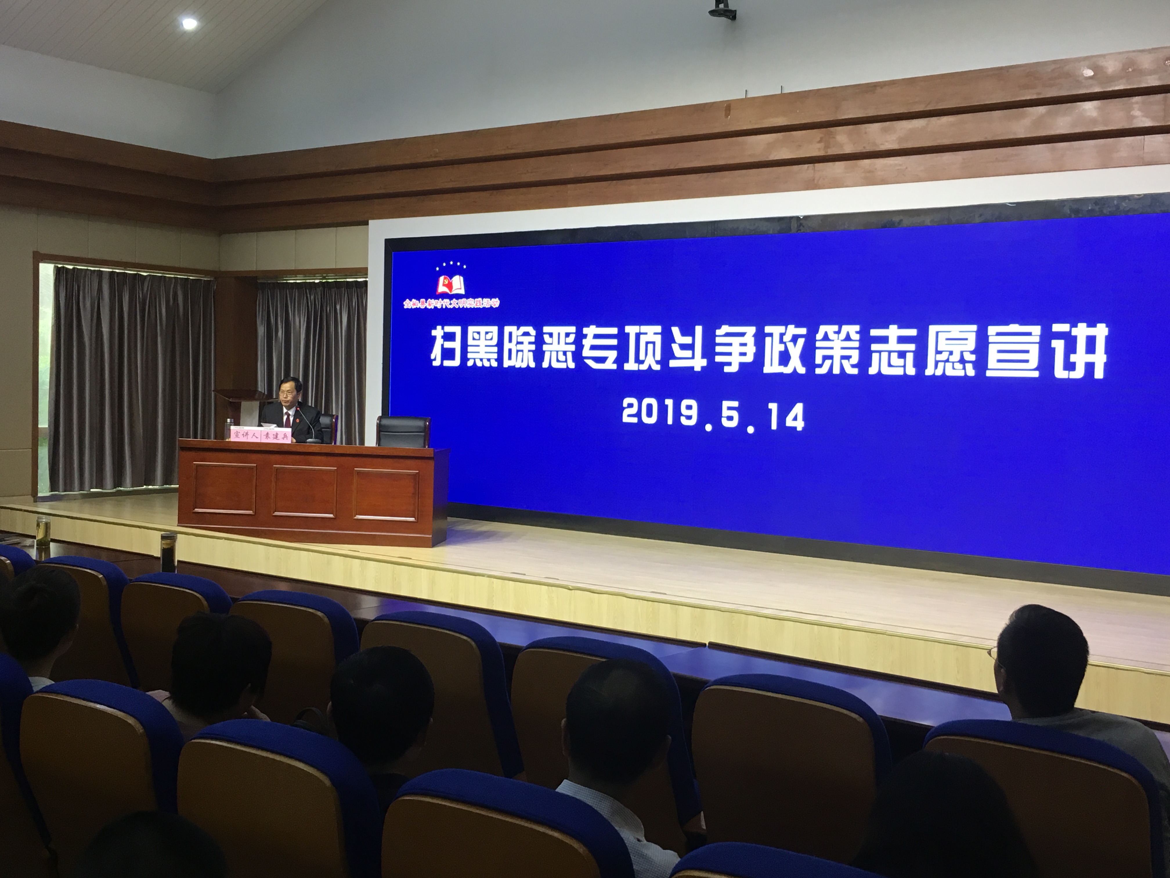 为深入推进扫黑除恶专项斗争,大力营造“黑恶必扫、除恶务尽”的社会氛围,壮大扫黑除恶声势和力量,5月14日下午,全椒县新时代文明实践暨扫黑除恶专项斗争政策宣讲活动在县新时代文明实践中心报告厅举行,县直各单位150多名党员干部参加活动。