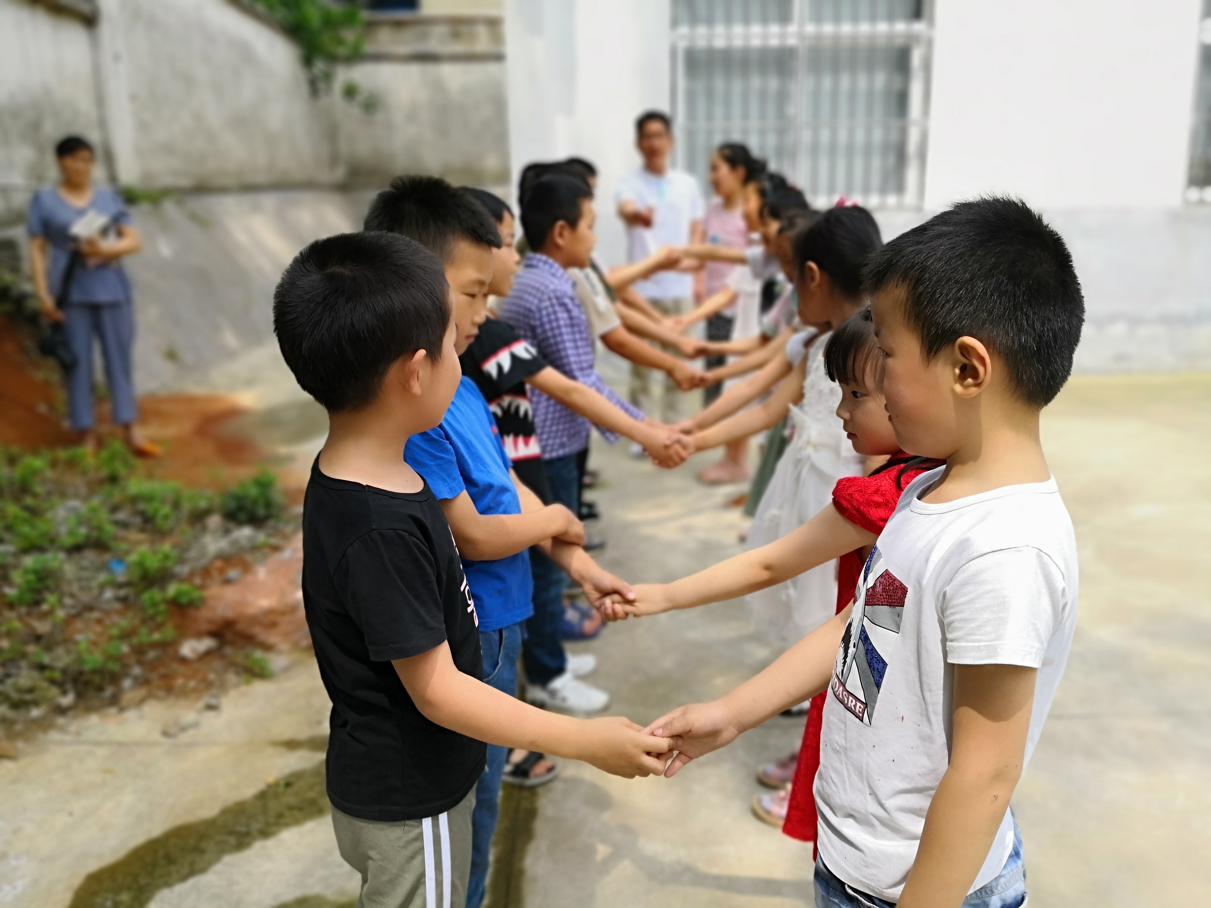 志愿者和孩子们一起做游戏
