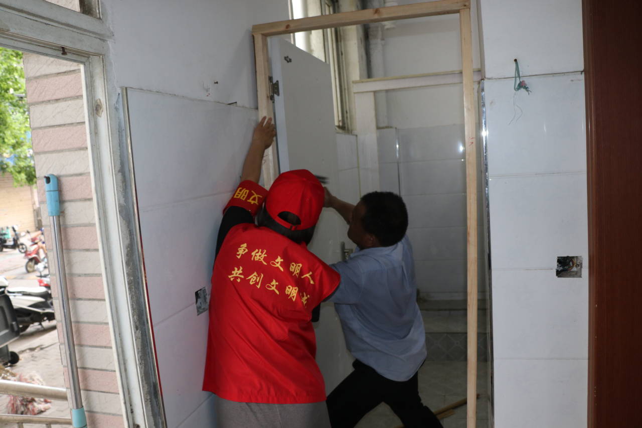 团县委在包保路段巡查时,发现实验小学后面公厕没有门,群众意见大,便联系人员,帮助安装