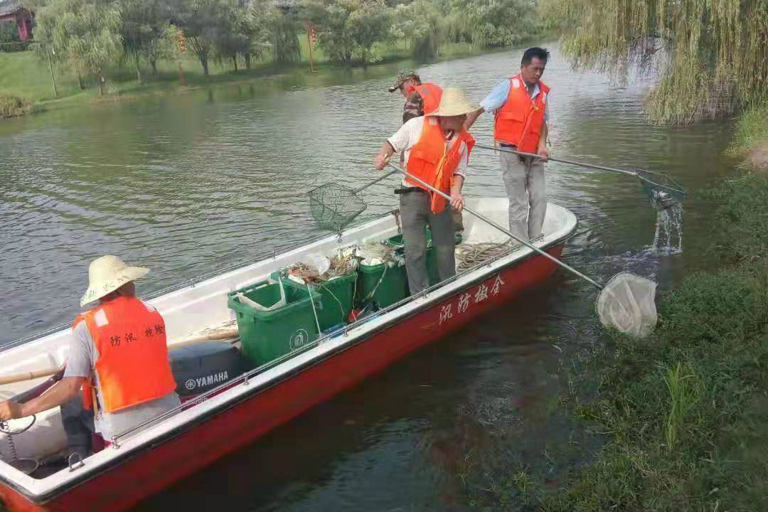 水利局利用周末时间对新、老襄河水面漂浮物进行打捞