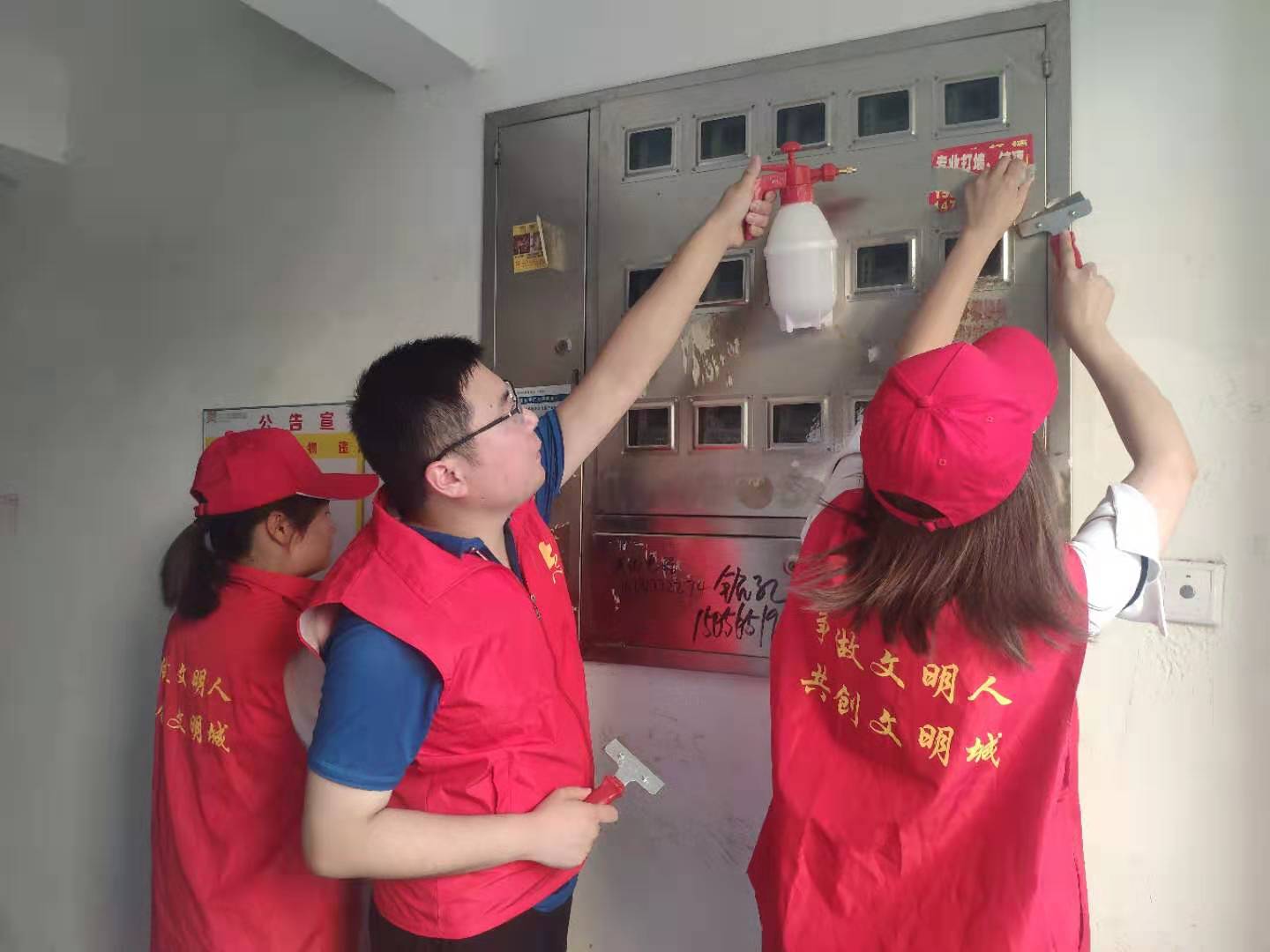 退役军人事务局深入包保小区清理“牛皮癣”小广告