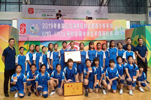 8月13日,为期八天的2019年金湖荷花荡景区杯全国青少年手球U10、U12比赛暨全国小学生手球锦标赛在淮安金湖完美落幕。实验小学女子大、小手球队联合出征,经多场激烈拼杀,最终小队斩获一等奖,程可珊、何欣怡获U10组体育道德风尚奖;大队喜获二等奖,王欣纯、汪子璇获U12组体育道德风尚奖。