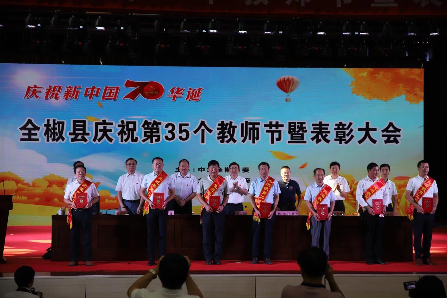 9月10日上午,全椒县庆祝第35个教师节暨表彰大会在县政务中心椒陵会堂召开。县领导朱大纲、杨光、杨勇、董光林、史法勇、阚绪瑞出席会议,县委教体工委班子成员及局机关全体工作人员,全县中小学校校长、幼儿园园长,各类受表彰人员,各学校教师代表,离退休教师代表参加会议。