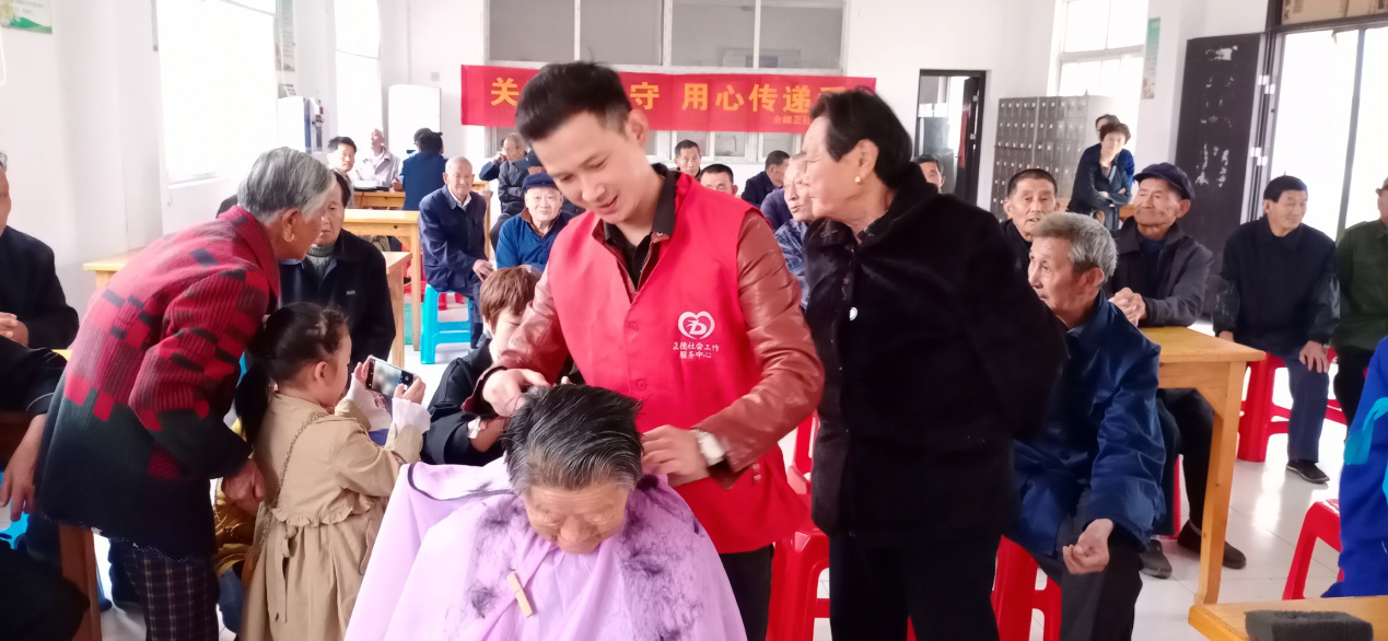 志愿者为老人理发