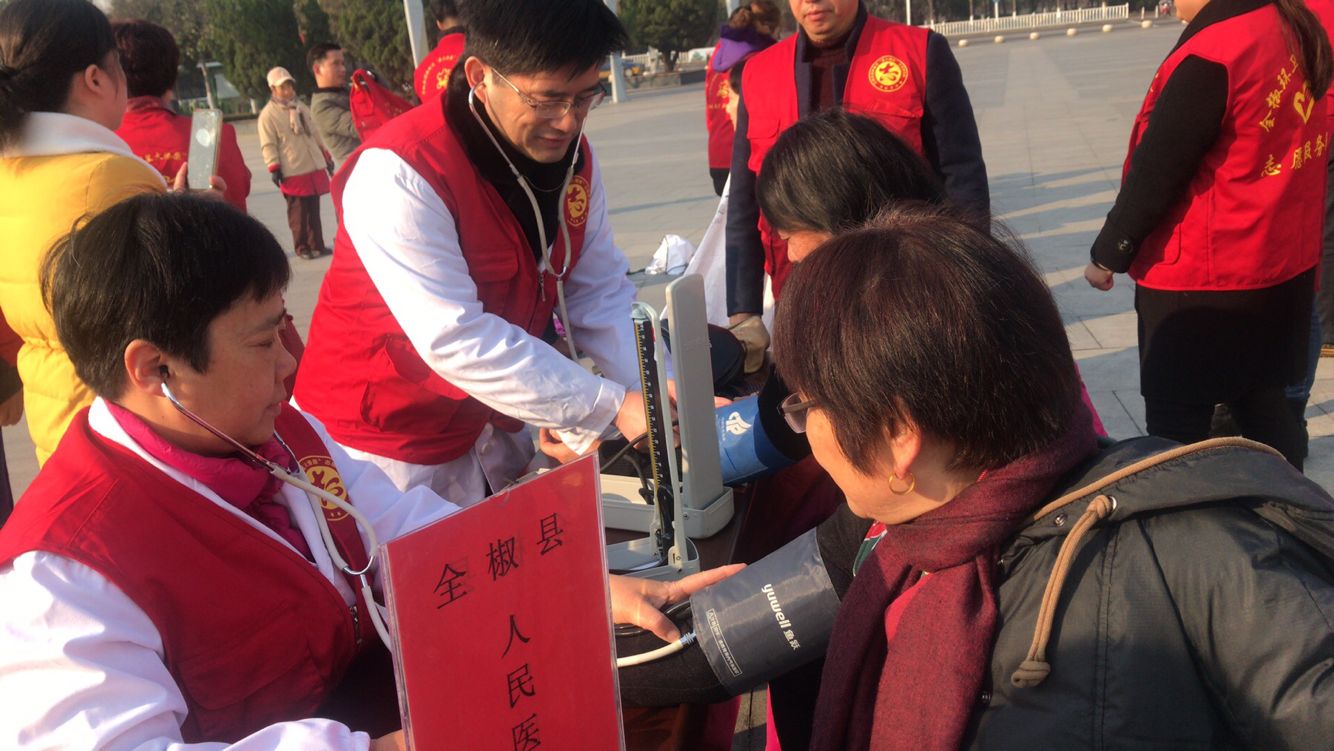 卫生系统志愿者为广大群众免费量血压、开展健康知识宣传