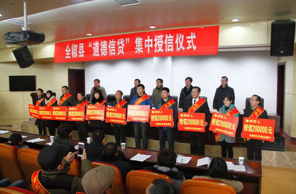 聚焦道德养成,小盆景变风景线。全椒县始终把“道德信贷”工程作为推动全县思想道德建设不断提升的关键一招,全域联动,成立全椒县道德信贷领导小组,定期召开道德信贷联席会议,沟通信息,研究政策,解决问题。县内电视台、报纸、网站等媒体广泛宣传,建立专栏,及时报道好人用信情况,发挥“道德信贷”的深层次效应;县农商行各支行利用网点进行宣传,加强点对点的精准宣传,确保每一个好人知晓政策,每一个部门理解政策。每年度举办“道德信贷”示范户评选活动,选树表彰示范户,凸显信义含金量,在用信人员中形成示范引领的作用,让好人有好报、有德者有得,引领社会崇德向善,为全县深入开展“道德信贷”工程营造浓厚氛围。截至2019年11月,全椒县道德信贷贷款授信户数合计117户,授信金额14470万元,用信户数11户,贷款余额9450万元。全椒县将继续拓展思维,深化发展,谋求突破,将“道德信贷”工程做好做实,帮助更多好人渡过难关,不断凝聚起向善向上的道德力量。(曹静)