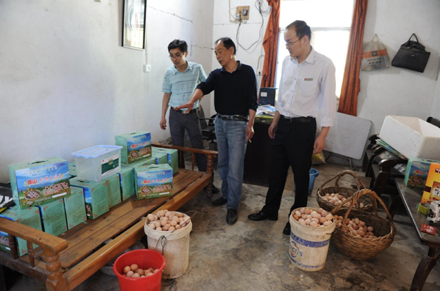 走访用信户贾长江,查看养鸡场经营情况 图片来源:杨勇