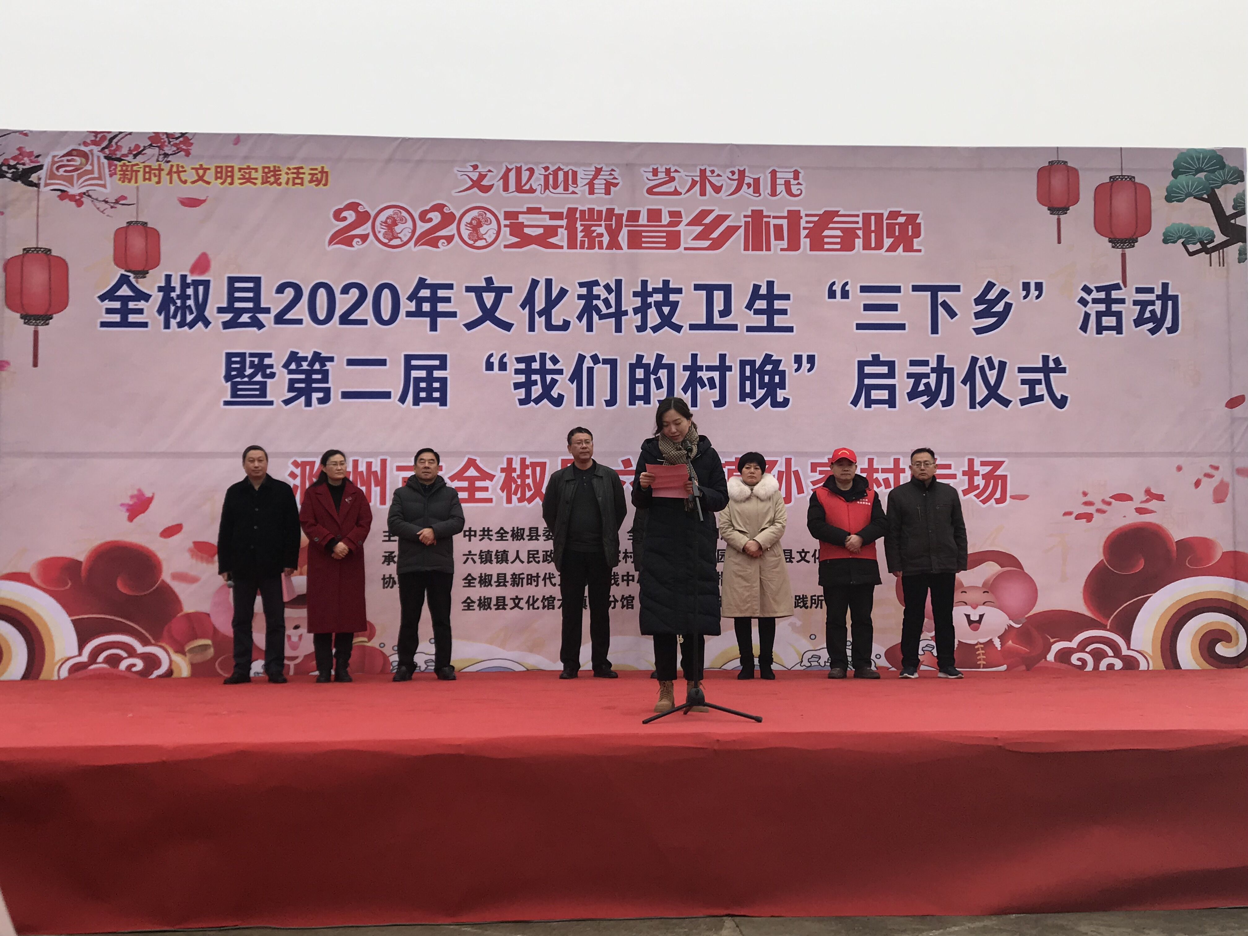 数九寒冬,寒气逼人,但在六镇镇孙家村农民文化广场上,却是欢声笑语,热闹非凡。1月13日上午,由中共全椒县委宣传部、全椒县文化和旅游局主办,六镇镇人民政府、孙家村农民文化乐园、全椒县文化馆总馆承办,全椒县新时代文明实践中心志愿服务指导中心、全椒县文化馆六镇镇分馆和六镇镇新时代文明实践所协办的全椒县2020年文化科技卫生“三下乡”活动暨第二届“我们的村晚”启动仪式在这里举行。