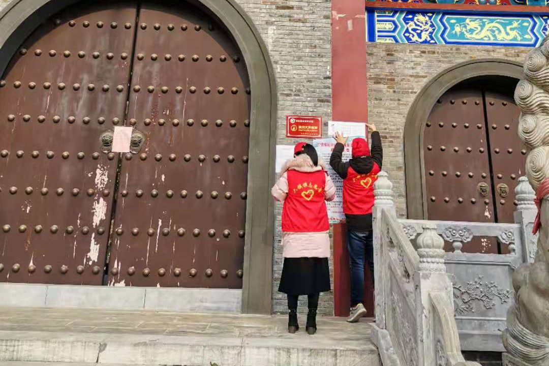 志愿者在景区张贴《防范新型肺炎48字守则》