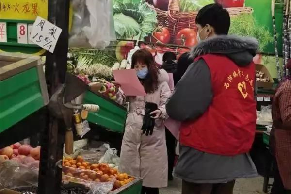 除了党员志愿者、医务志愿者,还有一群群在默默战斗的巾帼志愿者。面对疫情, 巾帼志愿者们哪里需要就到哪去,她们深入农贸市场、商场超市、小区广场散发宣传单页,开展防疫知识宣传;到企业查看延期开工落实情况;提醒武汉返回人员进行体温监测、居家隔离;协助社区、村做好外来人员登记及检查;及时劝导群众取消婚丧嫁娶等聚集性活动。