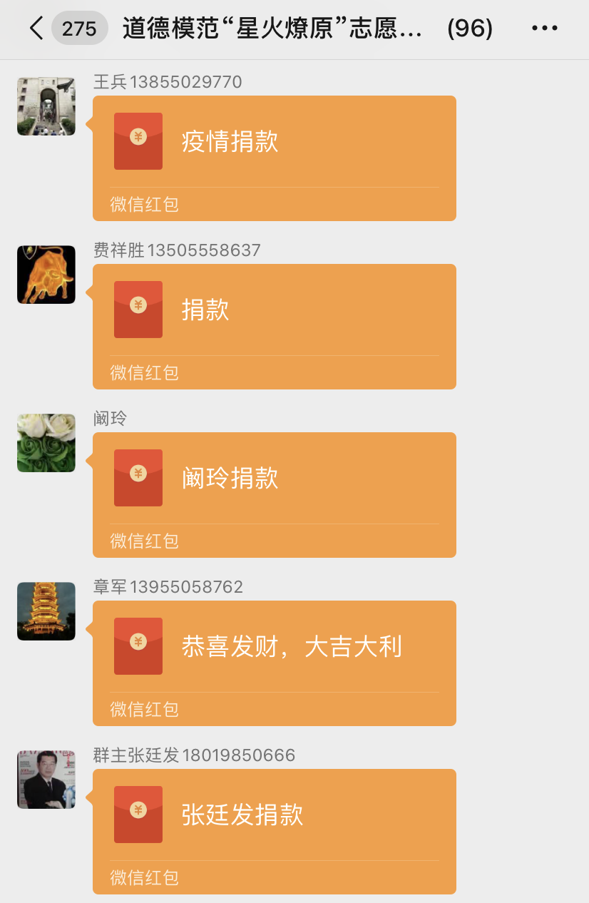 没有前往一线的好人志愿者们也纷纷行动起来,1月31日,一大清早就为值班人员送去热气腾腾的早餐,温暖了值班人员的身心。好人志愿者们还为疫情进行了捐款。