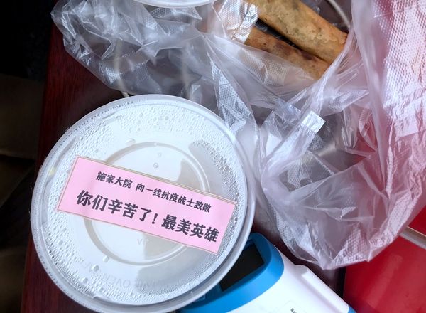 从事酒店经营的施家大院,不时的为值守人员送来热乎乎的炒面、稀饭、春卷等。还有执勤点旁边的县市监局儒林所工作人员每天为值守人员送来开水。还有……