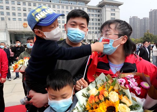 一个久违的拥抱,两行热泪,拉近了队员和家人同事的距离,从2月9日凌晨火线上战场到4月10日回家,他们经历了太多,舍弃了太多,也收获了许多。
