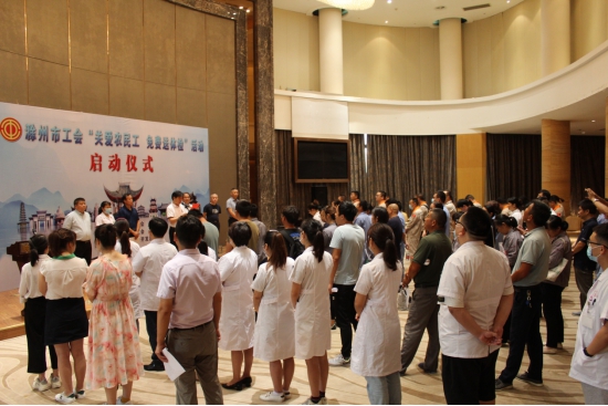 为进一步加强和改进工会为农民工服务工作,示范引领全县工会关心关爱农民工身体健康,维护农民工合法权益。2020年8月26日上午,由滁州市总工会主办,全椒县总工会承办的“关爱农民工 免费送体检”活动启动仪式在经开区齐云山庄举行。市总工会党组书记钱家广,市总工会党组成员、市私营企业工会联合会主席李腾飞出席活动,钱家广发表讲话并宣布活动启动,县政协副主席、县总工会主席姜志山主持启动仪式。