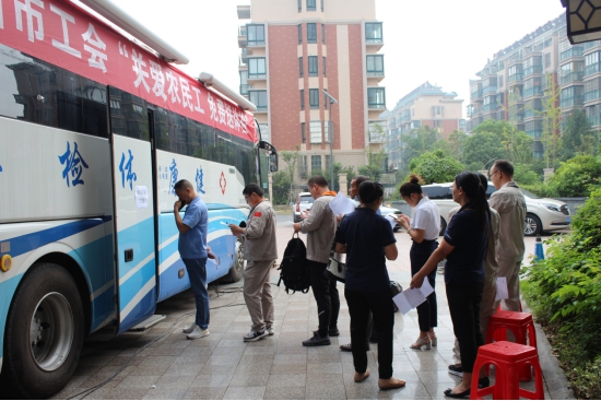 上午6:30,安徽省半汤疗养院流动体检车在齐云山庄为80名从事建筑、制造行业的一线人员和农民工开展免费体检,活动得到了现场参与体检人员的积极响应。