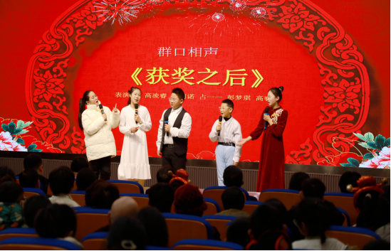 儿童群口相声《获奖之后》、童声合唱《小孩子大梦想》、古筝《春到湘江》等节目博得现场观众阵阵喝彩,合唱《我骄傲我是中国人》激昂的歌声将年会推向高潮。