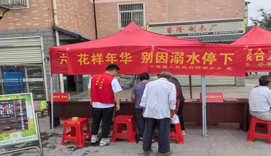 六镇镇广泛宣传防溺水的重要性,将防溺水工作宣传到每位学生、家长心中,12个村(居)与水域承包人签订防溺水责任书,督促专人巡河,在危险水域放置简易救生设备,确保有人落水及时发现、及时救援。