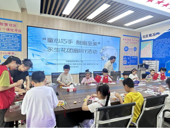 为丰富辖区儿童的暑期生活,将传统文化与现代手工技术相结合,丰富他们的想象力并提高动手能力,8月6日,全椒县襄河镇南屏社区联合全椒县科技局在南屏社区活动室开展“童心巧手 制扇至美”永生花团扇DIY活动。