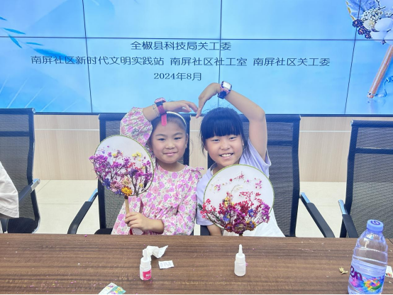 此次活动,帮助儿童了解了传统文化的魅力,有利于培养他们的审美能力和创造能力。同时,干花团扇的制作过程需要一定的耐心和细心,更有利于培养孩子们在生活学习中的恒心和专注力。兴趣是最好的老师,在今后的活动中,南屏社区将继续开展多种形式的志愿服务活动培养未成年人的兴趣爱好,营造健康绿色的文化氛围,帮助他们茁壮快乐成长。(韩戎)