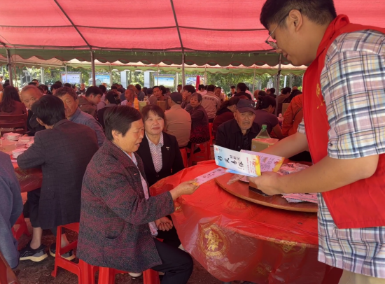 图:全椒县襄河镇八波村移风易俗大食堂宴席现场,文明乡风志愿服务分队开展移风易俗宣传活动。